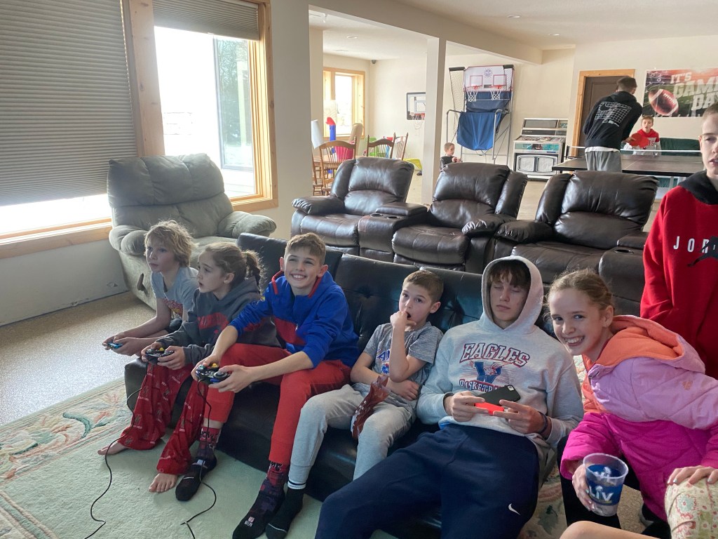 The barn is a gift from GOD on days like today. The cold, the kids…all of it. It’s a great place to exert some energy and have some fun. We had a mean family basketball game going for awhile there. We also played dodgeball and some football.