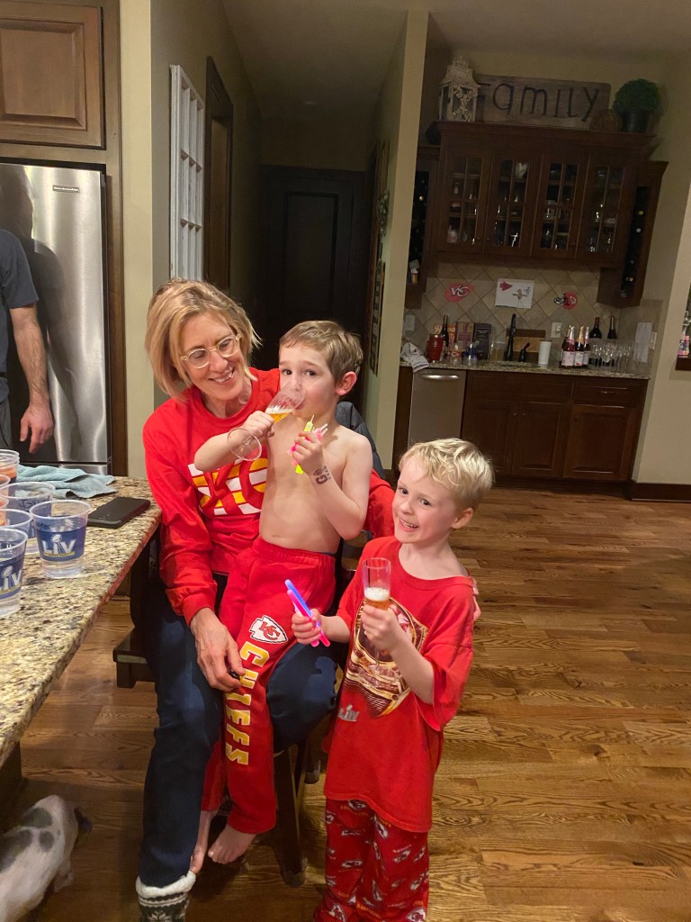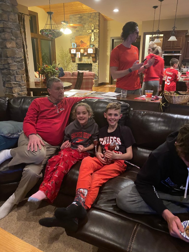 The Dorsey, Hall, Gile crowd pulled out all the stops to help the Chiefs to victory. Sadly, none of our efforts were successful. Including this beautiful rendition of “who let the dogs out?”
