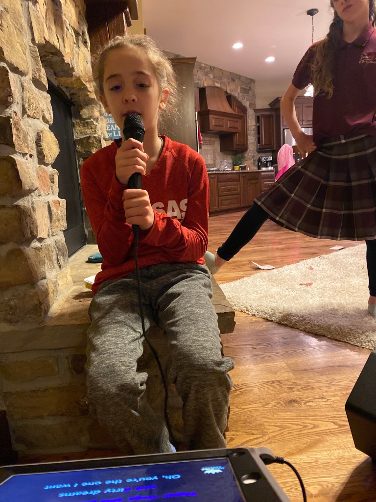 It’s an improptu karaoke party with my children on a Tuesday night.