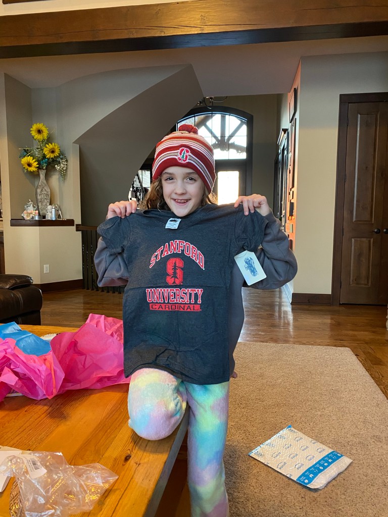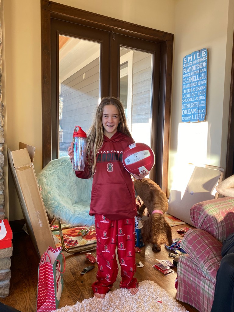 She is incredibly competitive and also very sweet. She gives the best snuggles and the greatest hugs. She loves her family more than anything and competes like a boss. She is very smart, works hard in school and writes the best notes. She loves all sports and loves to play in the barn with her siblings and cousins. Volleyball is her favorite…but she sure does love to steal the basketball from other people and she really wants to go to Stanford (thanks a lot Fitz and Jenna!). She loves to go to St. James and loves do be involved in the Lemon Out event. She is a dare devil, loves fruit more than any human I know (especially pineapple) and could watch the show “Bunked” every single day if I’d let her. She giggles like crazy. She is a fierce and loyal friend and sister. I can’t even being to tell you how much joy this human being brings into our life.