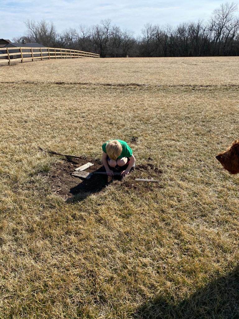 We played hockey, cleaned the barn, dug in the dirt and went on a hike. It was amazing.