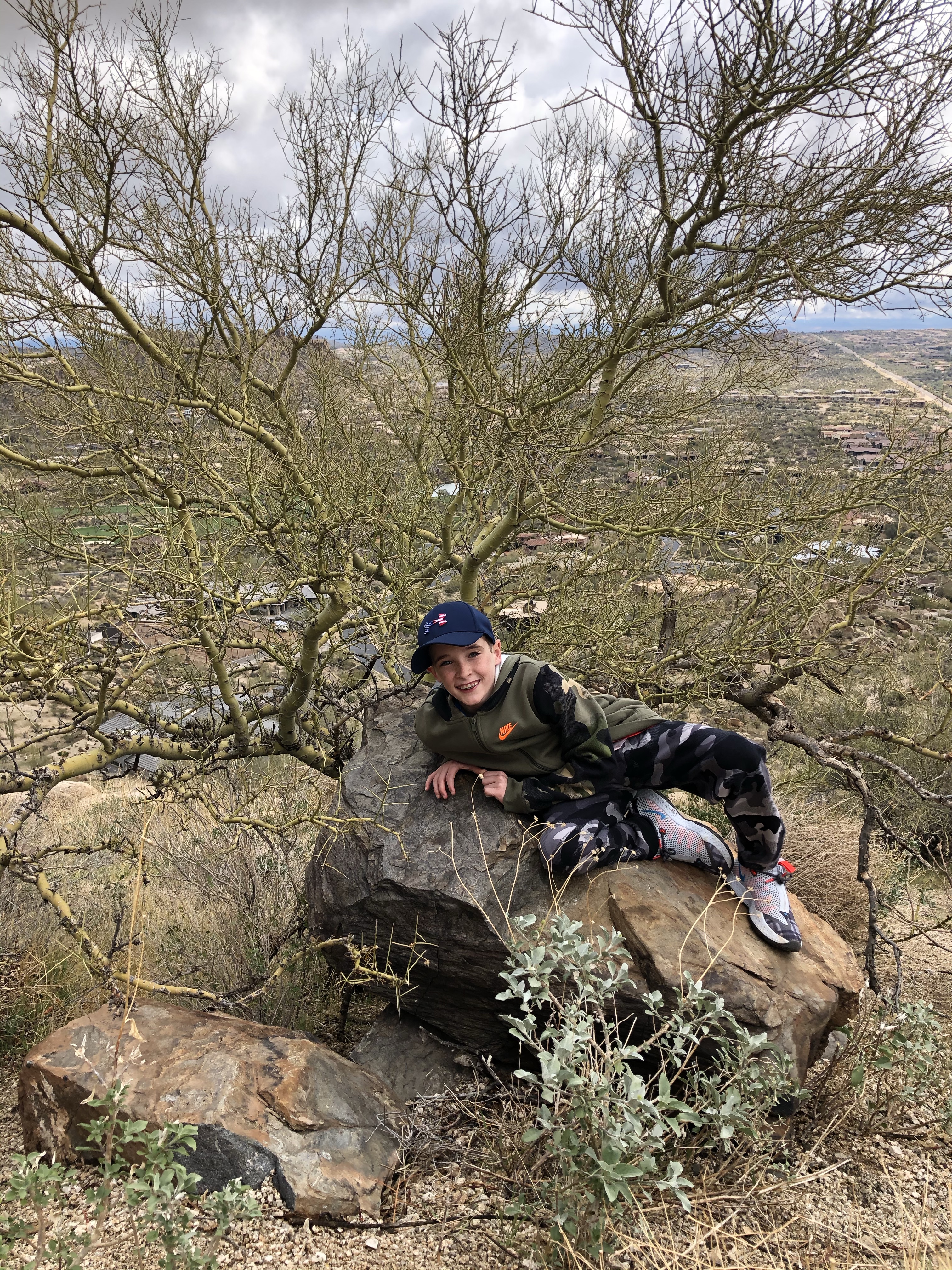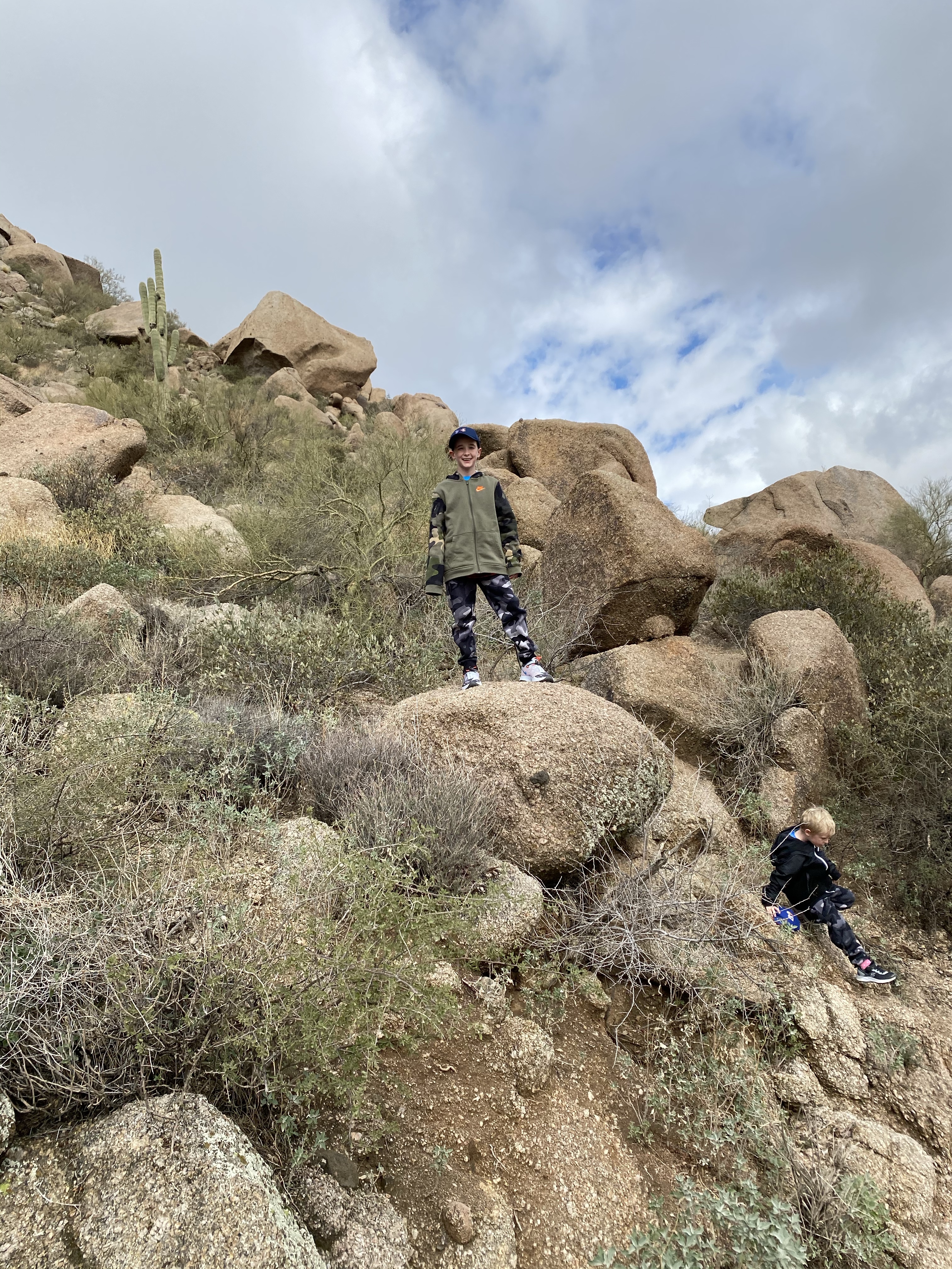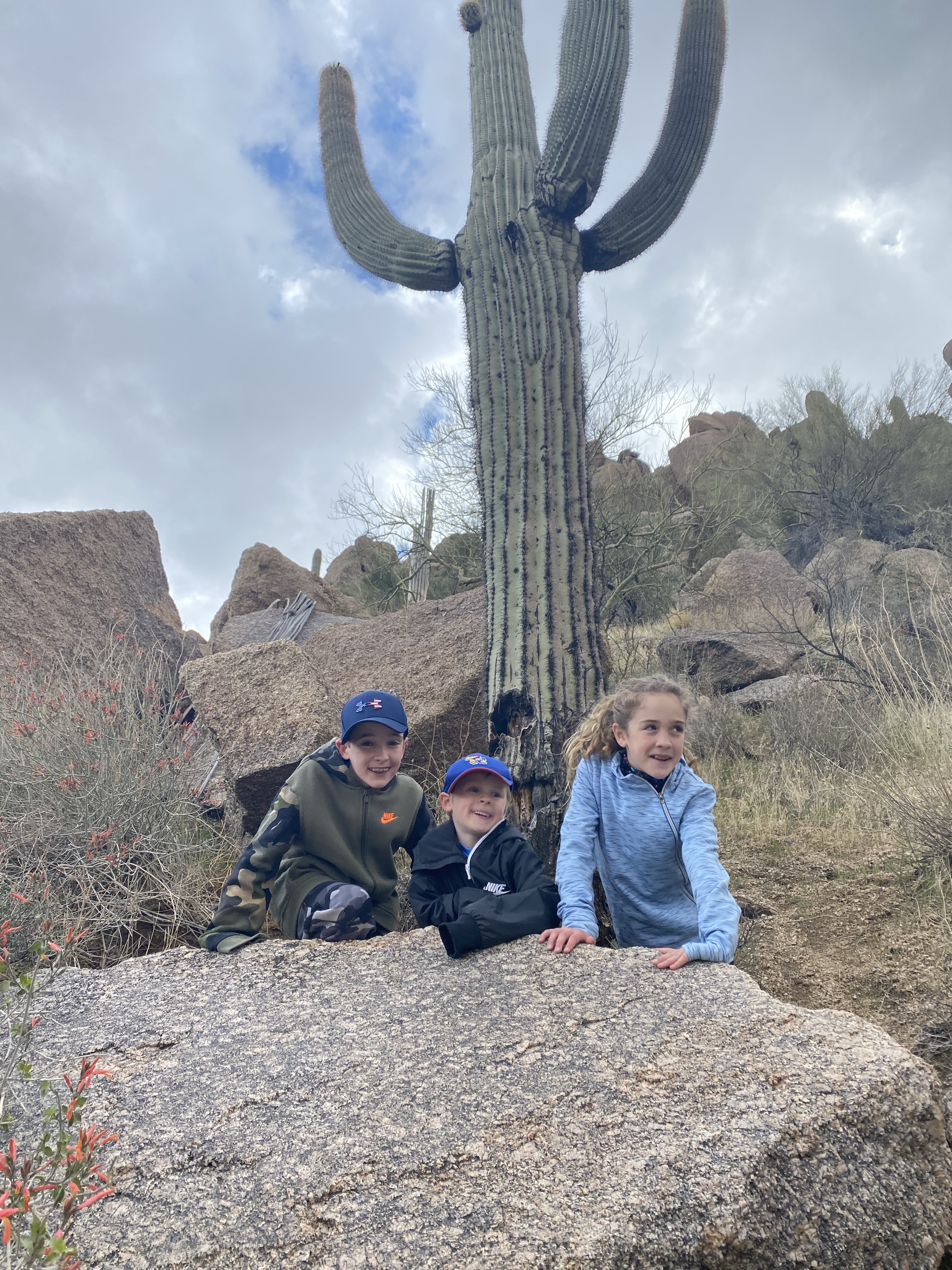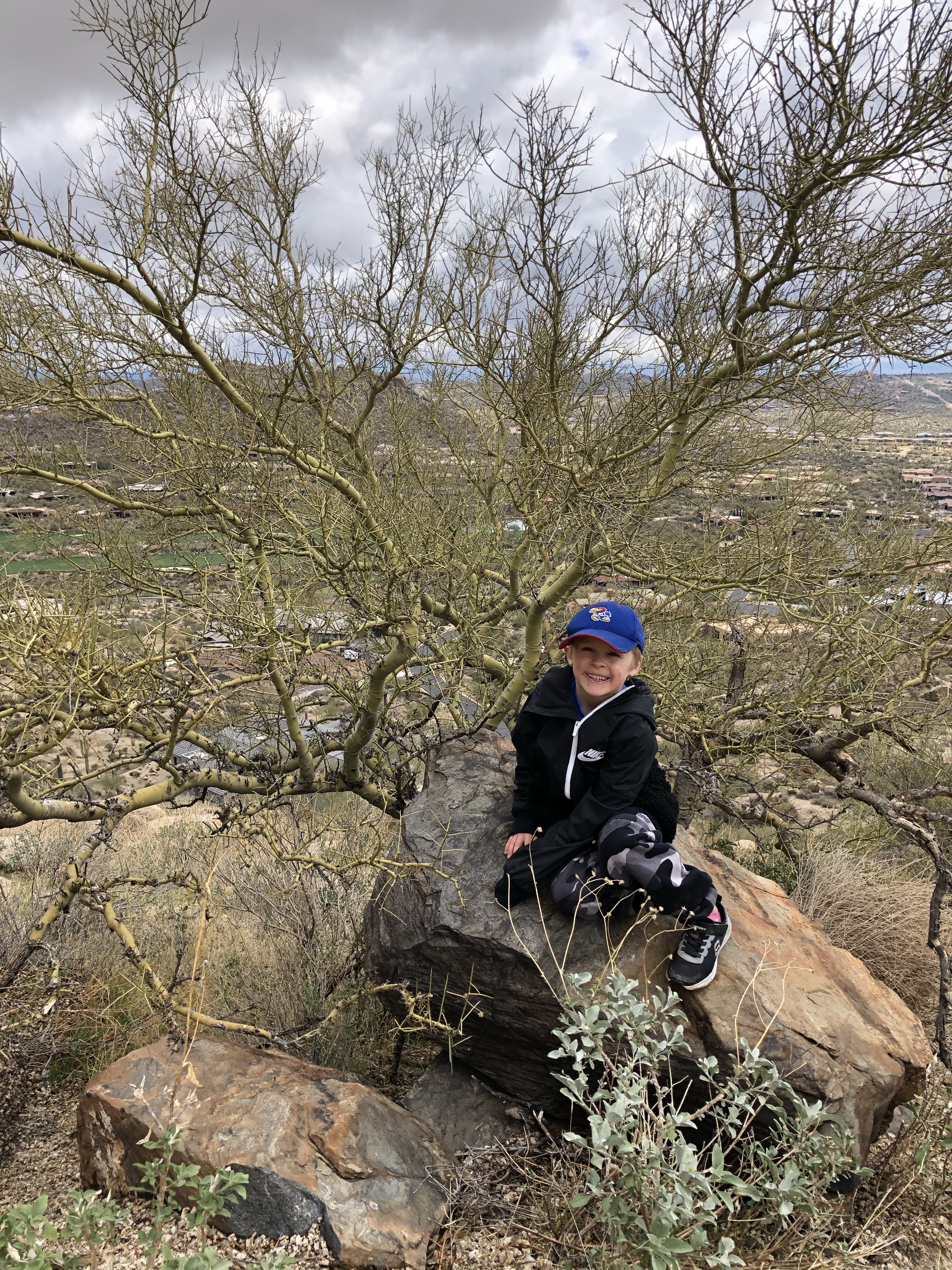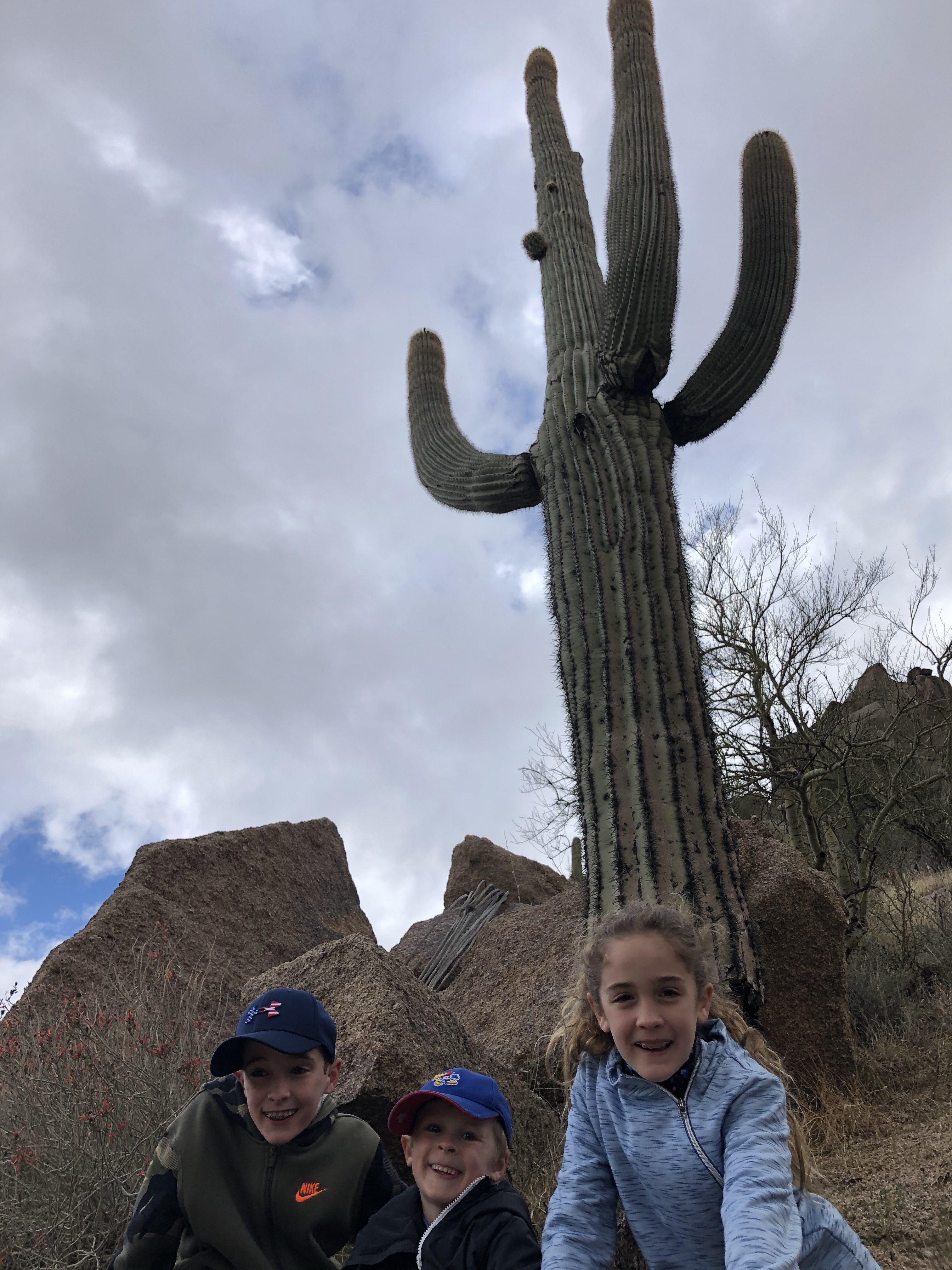 This kid was ready to repel from the mountain! Craziness. He was fearless and could have hiked all day. The last picture is of Cooper and the Arizona state tree. The kids liked these because they have green branches.