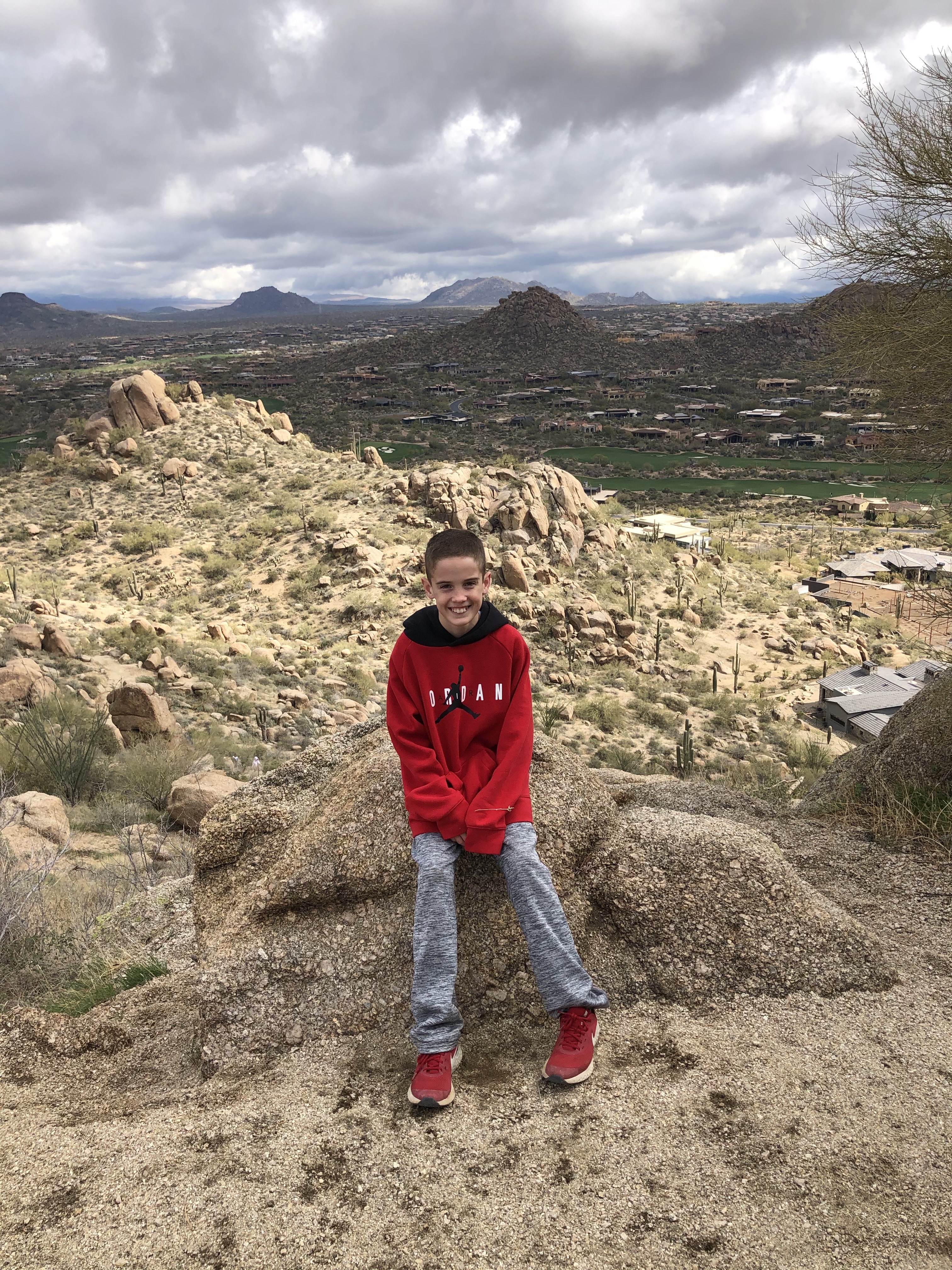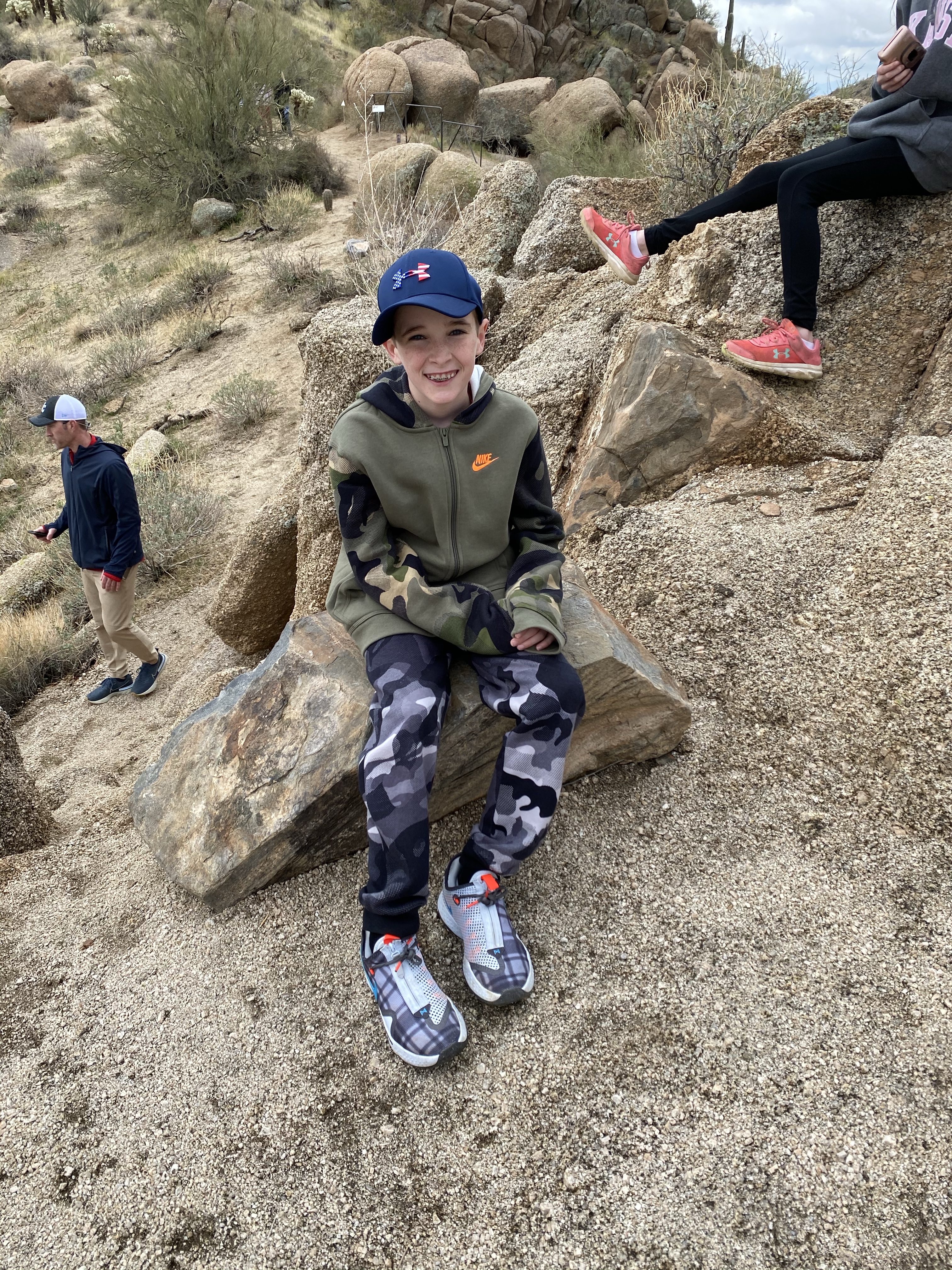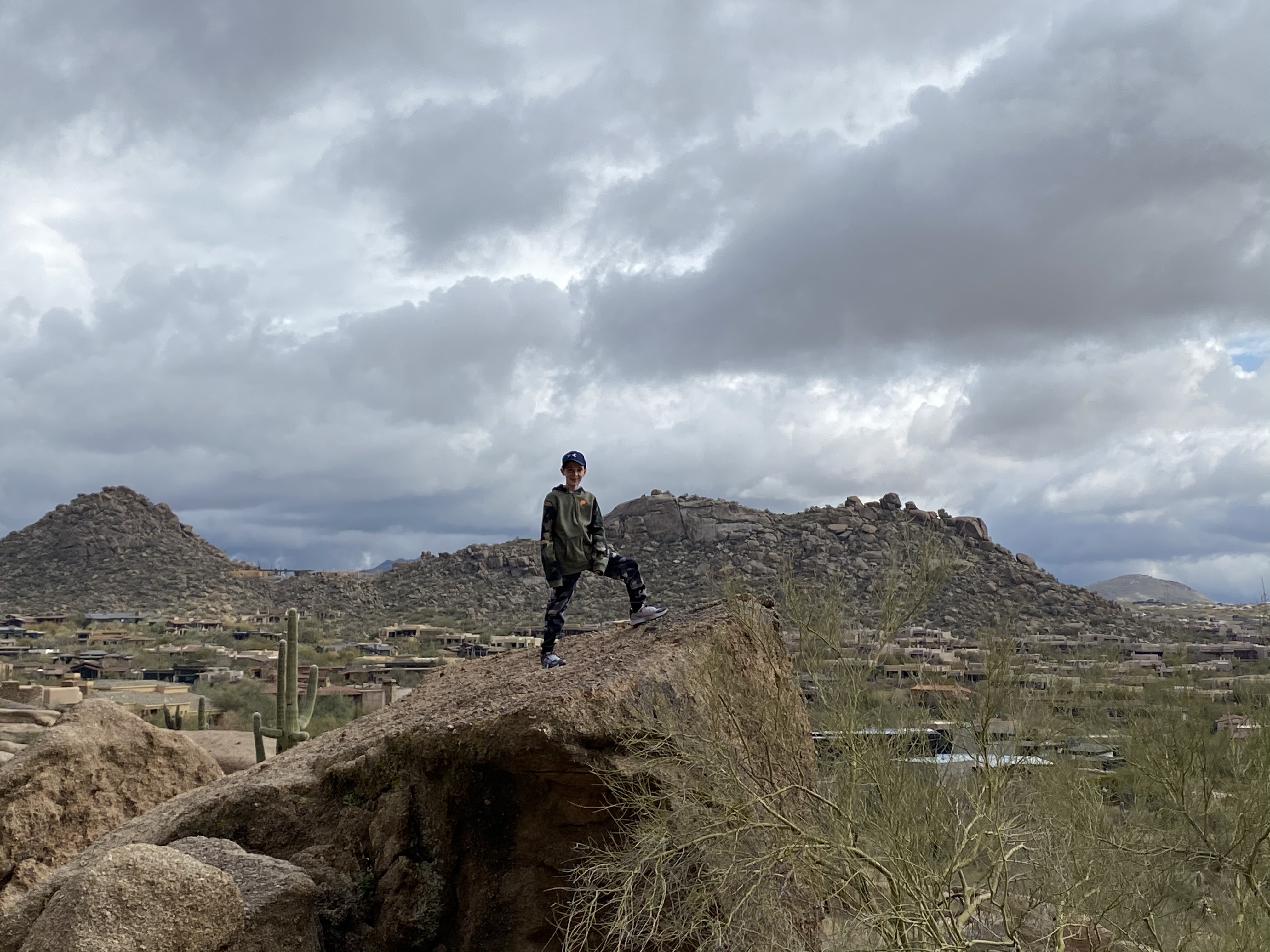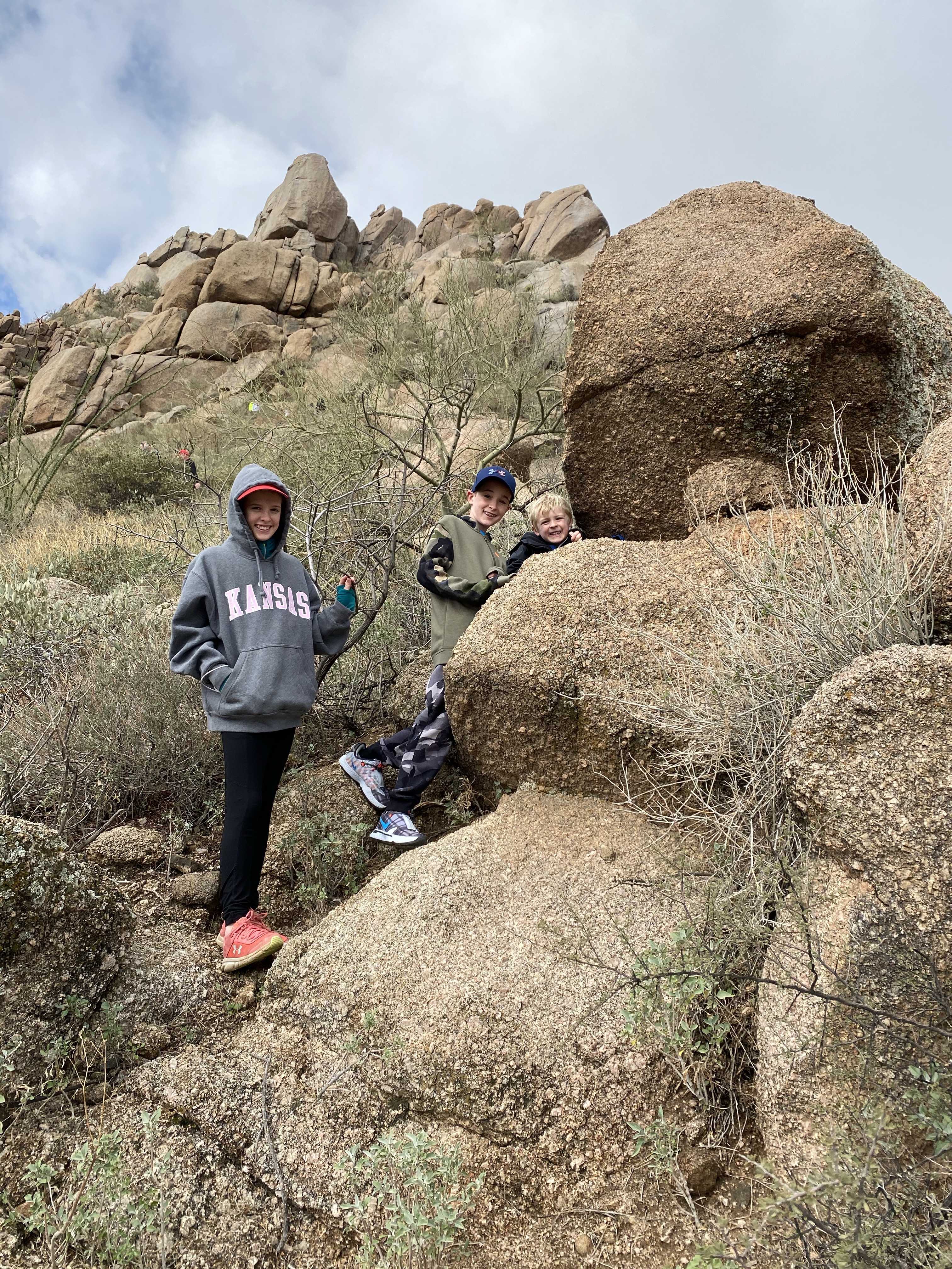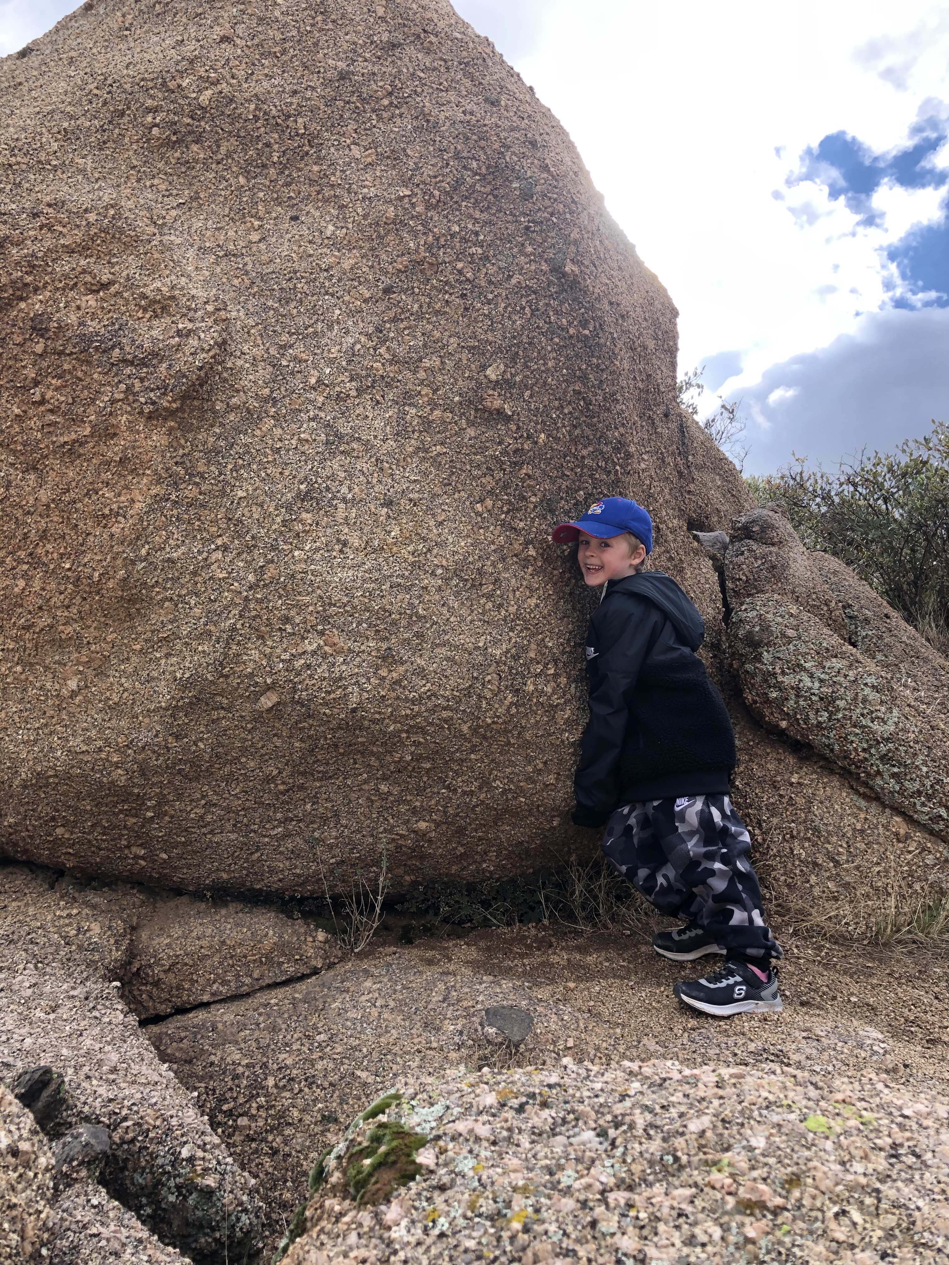 This kid was ready to repel from the mountain! Craziness. He was fearless and could have hiked all day. The last picture is of Cooper and the Arizona state tree. The kids liked these because they have green branches.