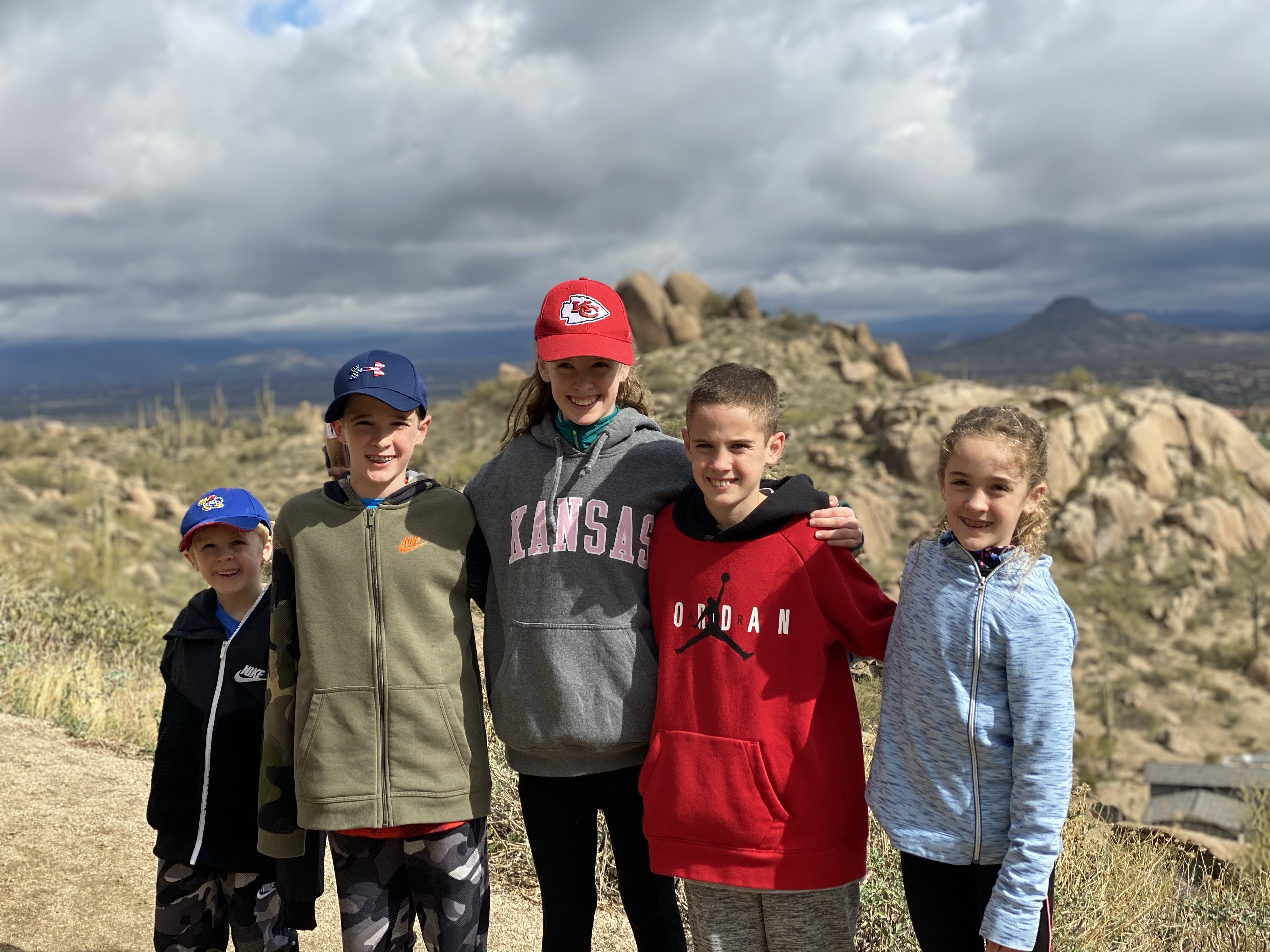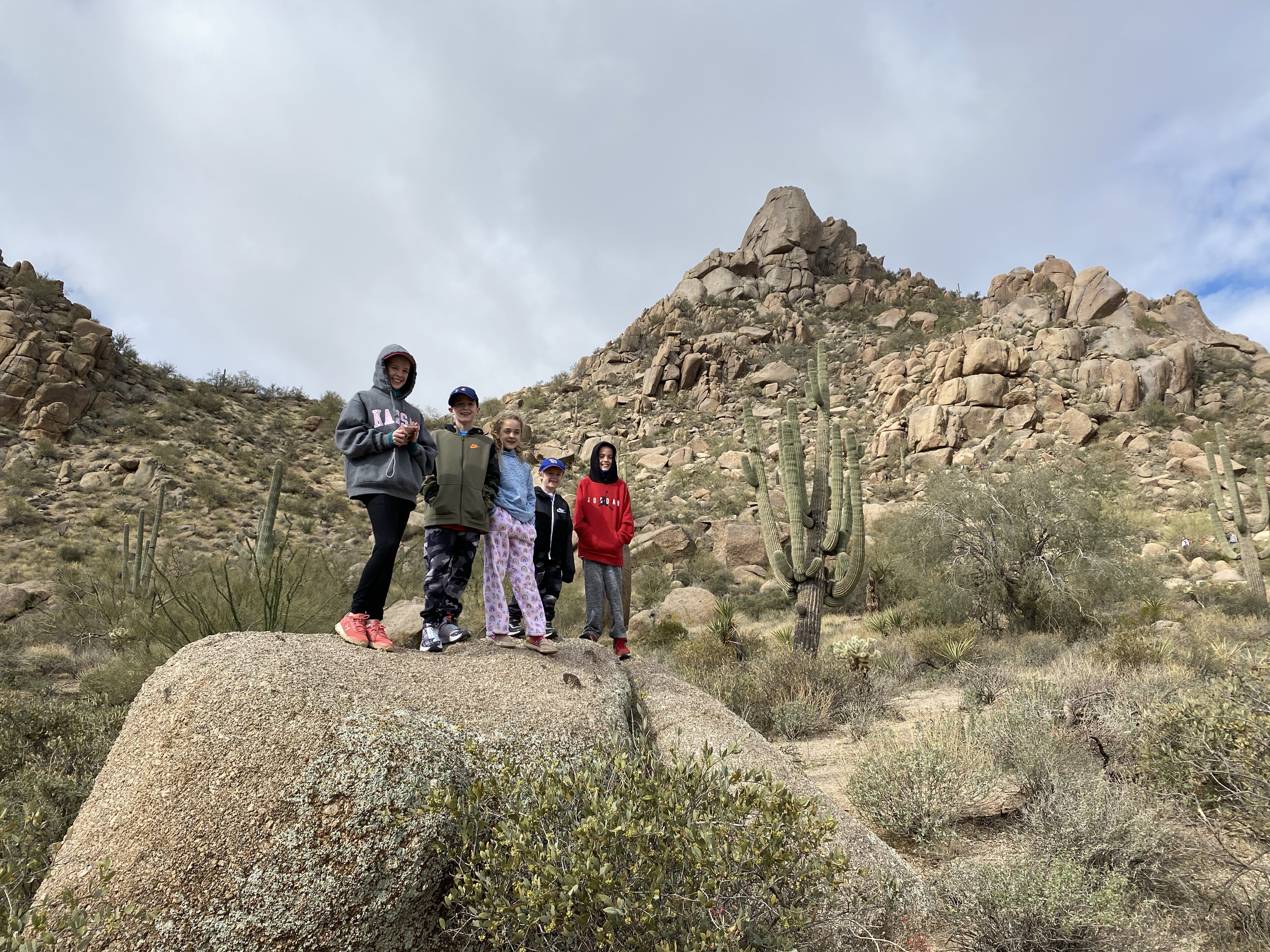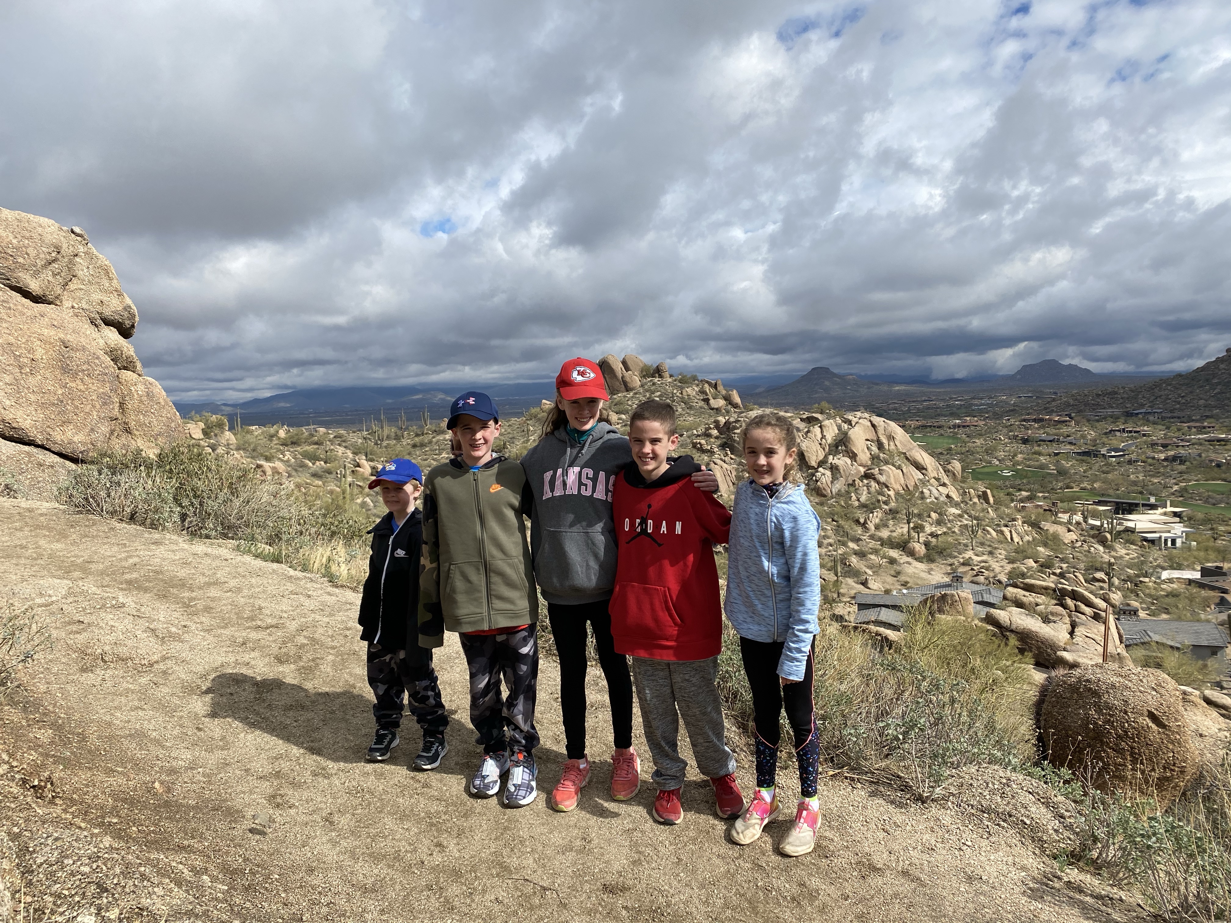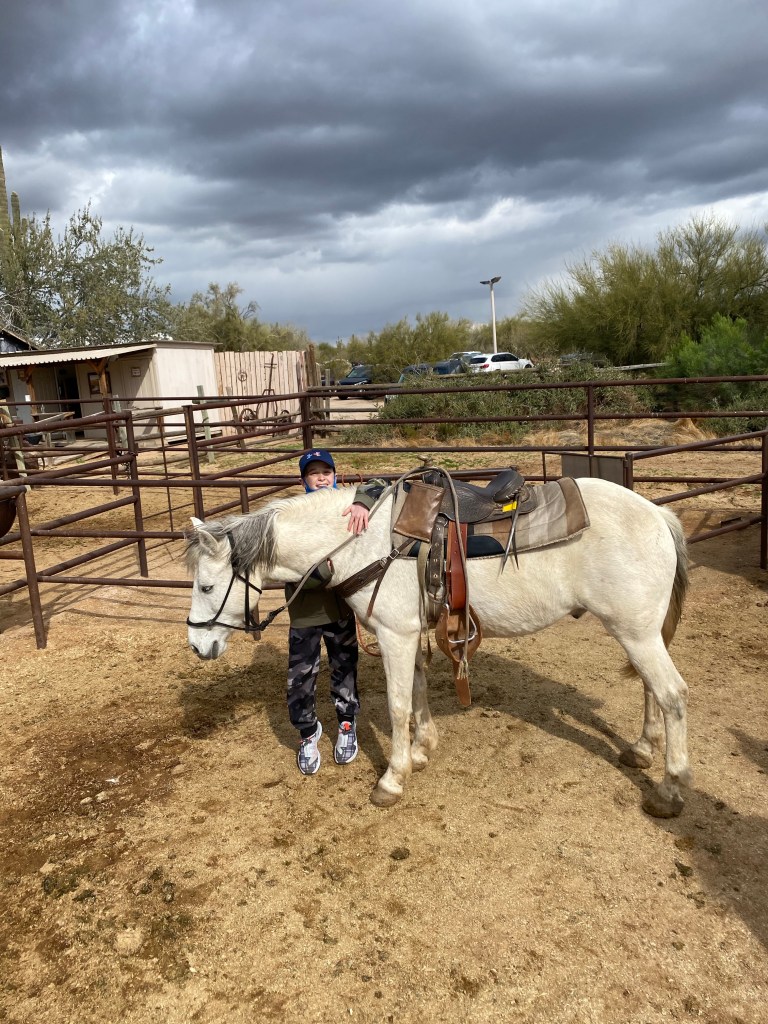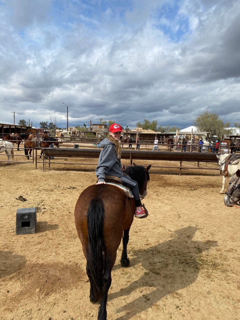 After the hike we went for our first ever trail ride. The kids have never ridden a horse other than our neighbors for about 3 minutes total. We got to ride through the Sonoran Desert and it was pretty great. There were more cactus that I’ve ever seen. I also learned that a cactus has to be at least 70 years old to grow an arm. The more arms they have, the older it is! The kids really liked riding horses and now that they’ve had a taste of it, they are already asking when they can try again but next time…run. Finley and his horse Bear!Fiona and her horse Ruby Grapefruit! Her horse was a bit chubby and a little slow. Ellen’s and her horse Delta! My horse Vegas apparently had a large crush on Delta. He wouldn’t leave her side or stop sniffing her butt. Cooper and Casper made a great pair. Fletcher and his horse Teddy. Daddy and his horse Winston!