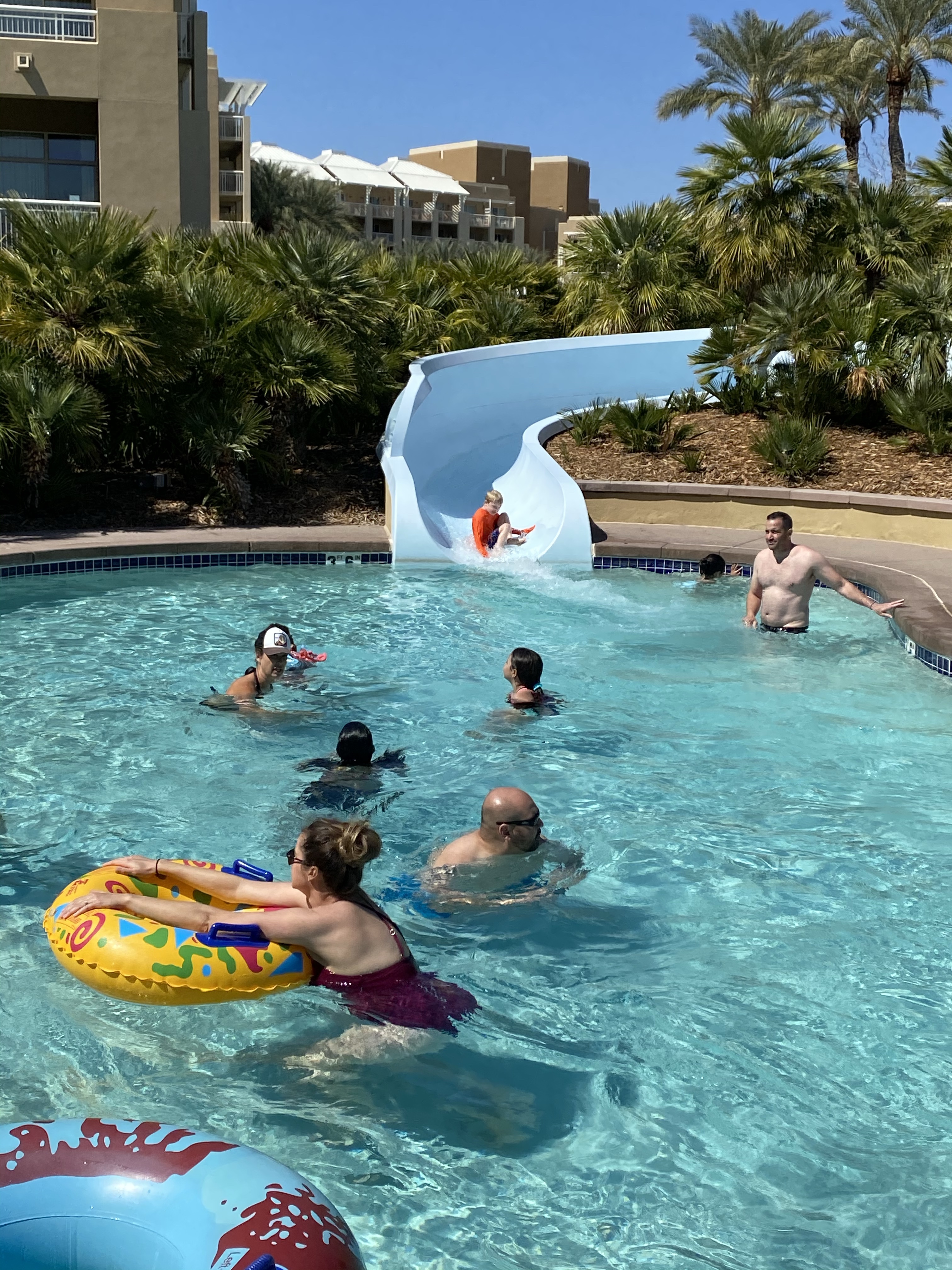 The kids however, swam for five hours non stop. They found ways to manipulate the slide to make it faster and chased each other in the lazy river.