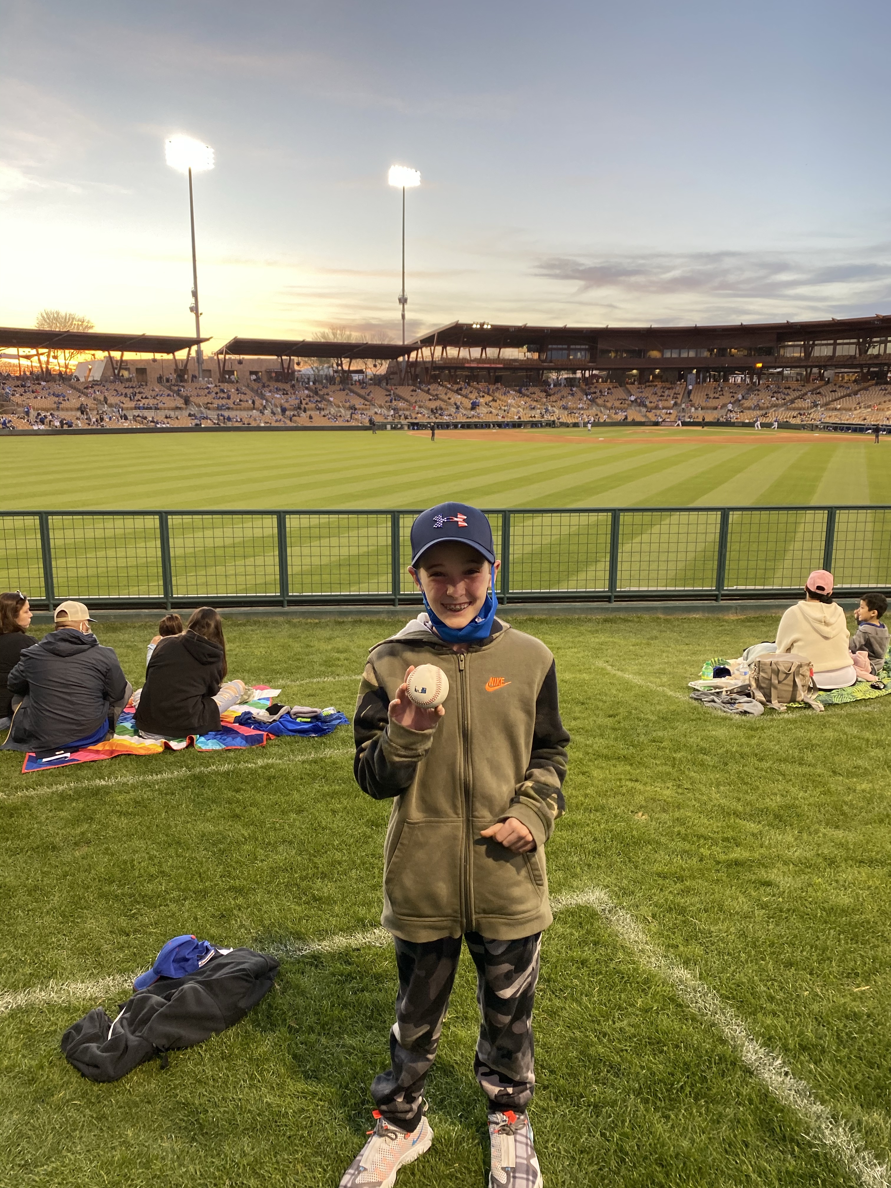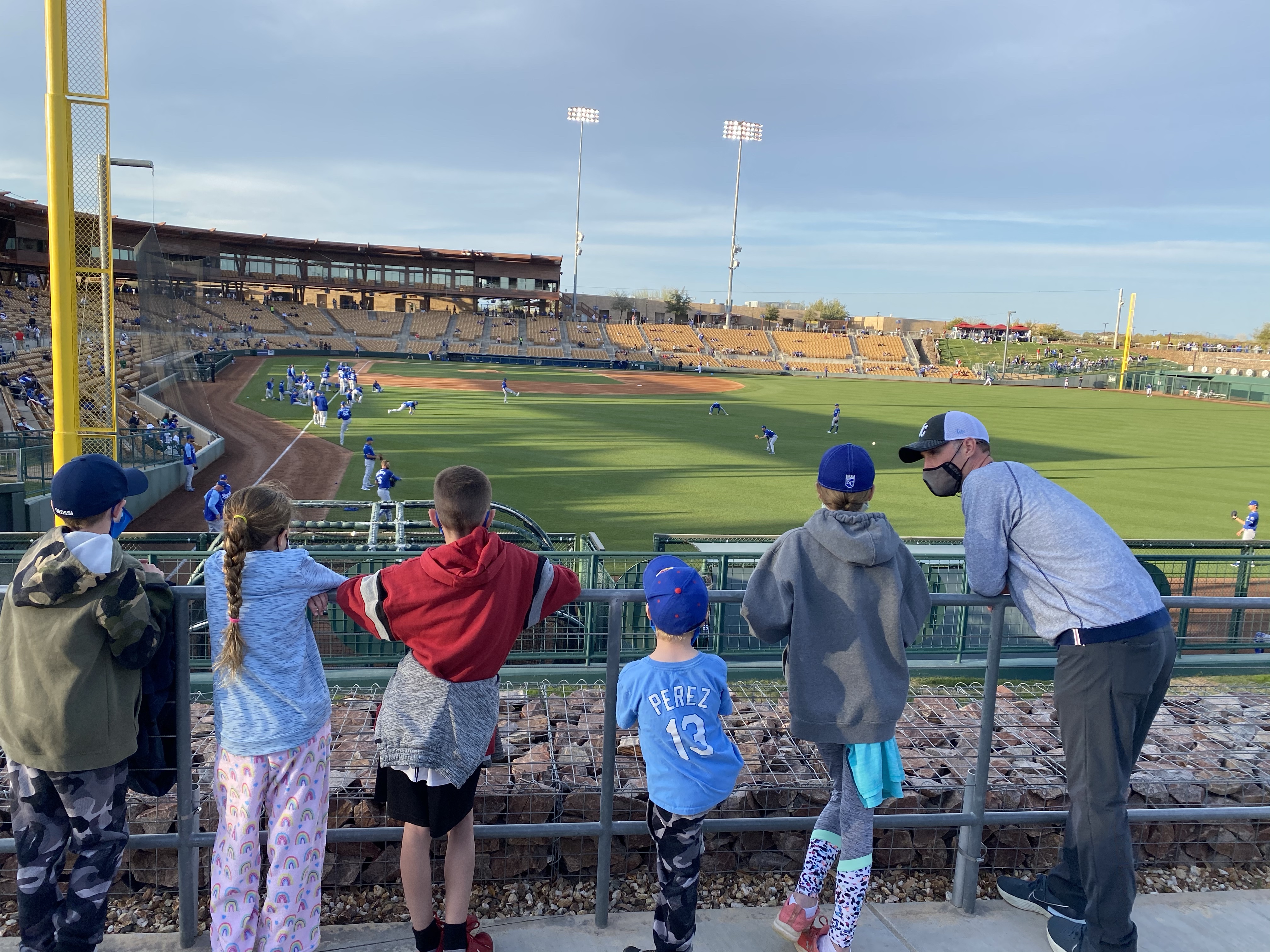 The spring training experience was a little different because of Covid. They spray painted rectangles in the grass in the outfield to help social distance everyone and there were very few people in the actual stands.