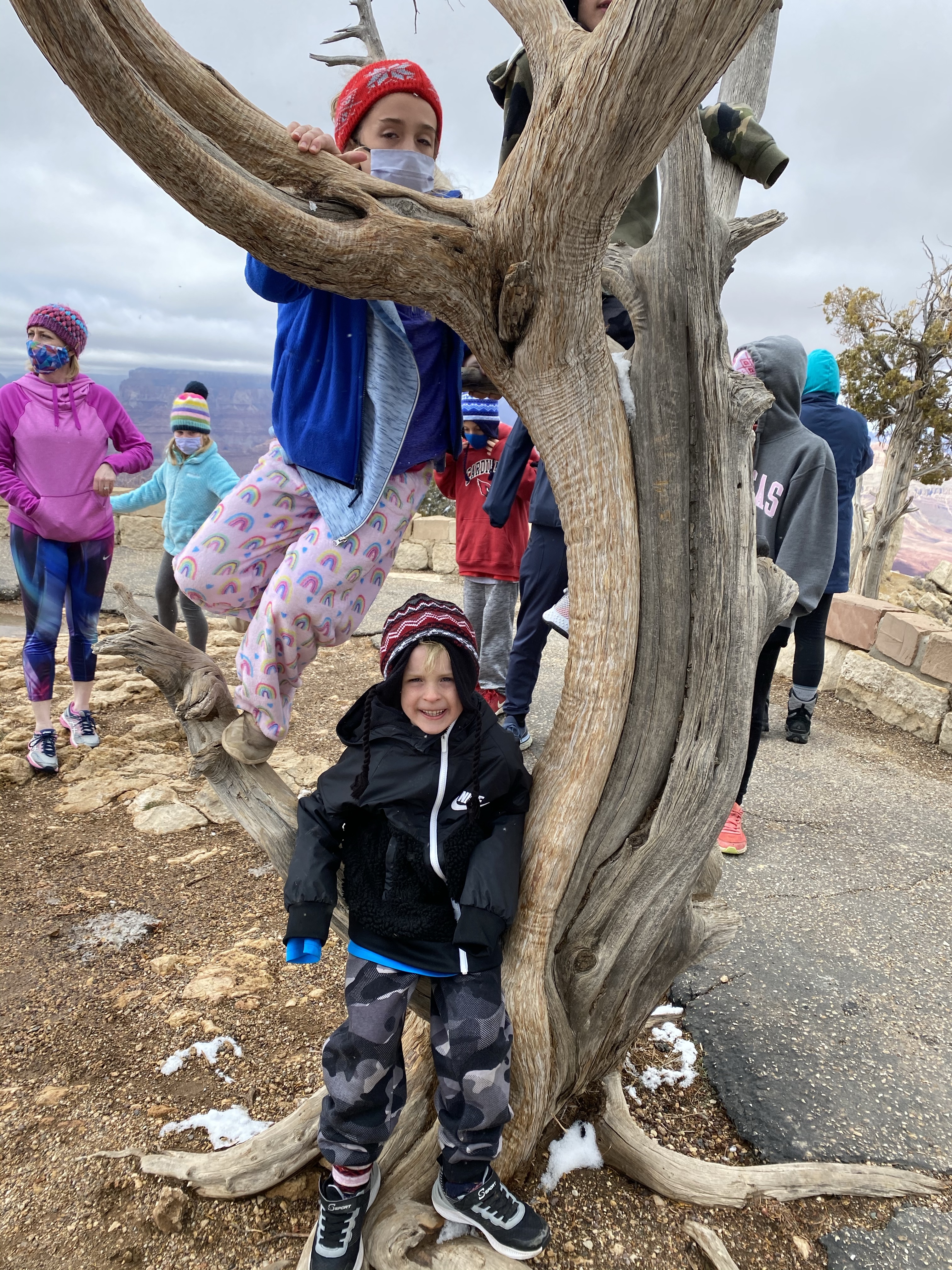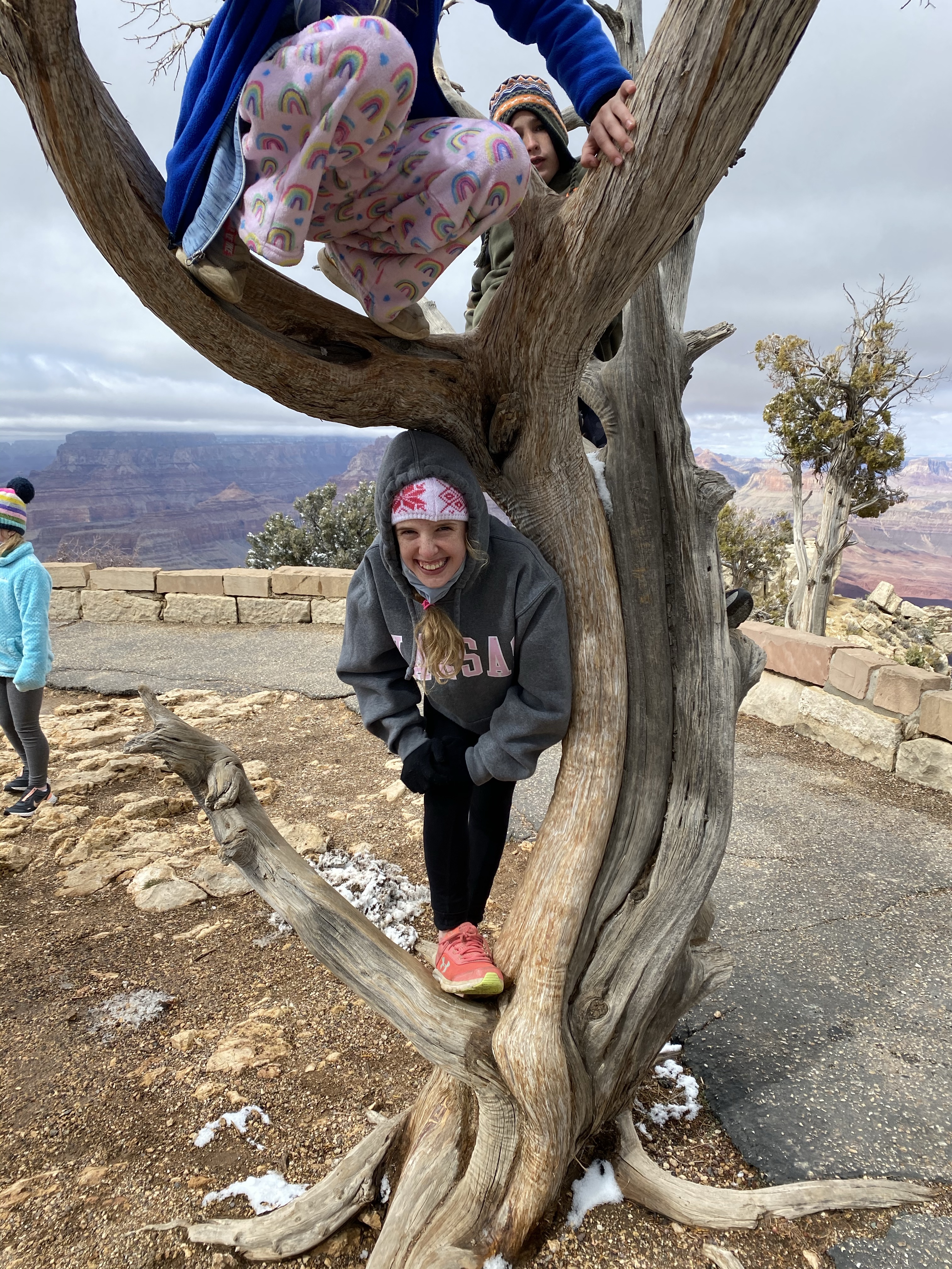 Wouldn’t be a day if we didn’t find a tree to climb, even at the Grand Canyon!
