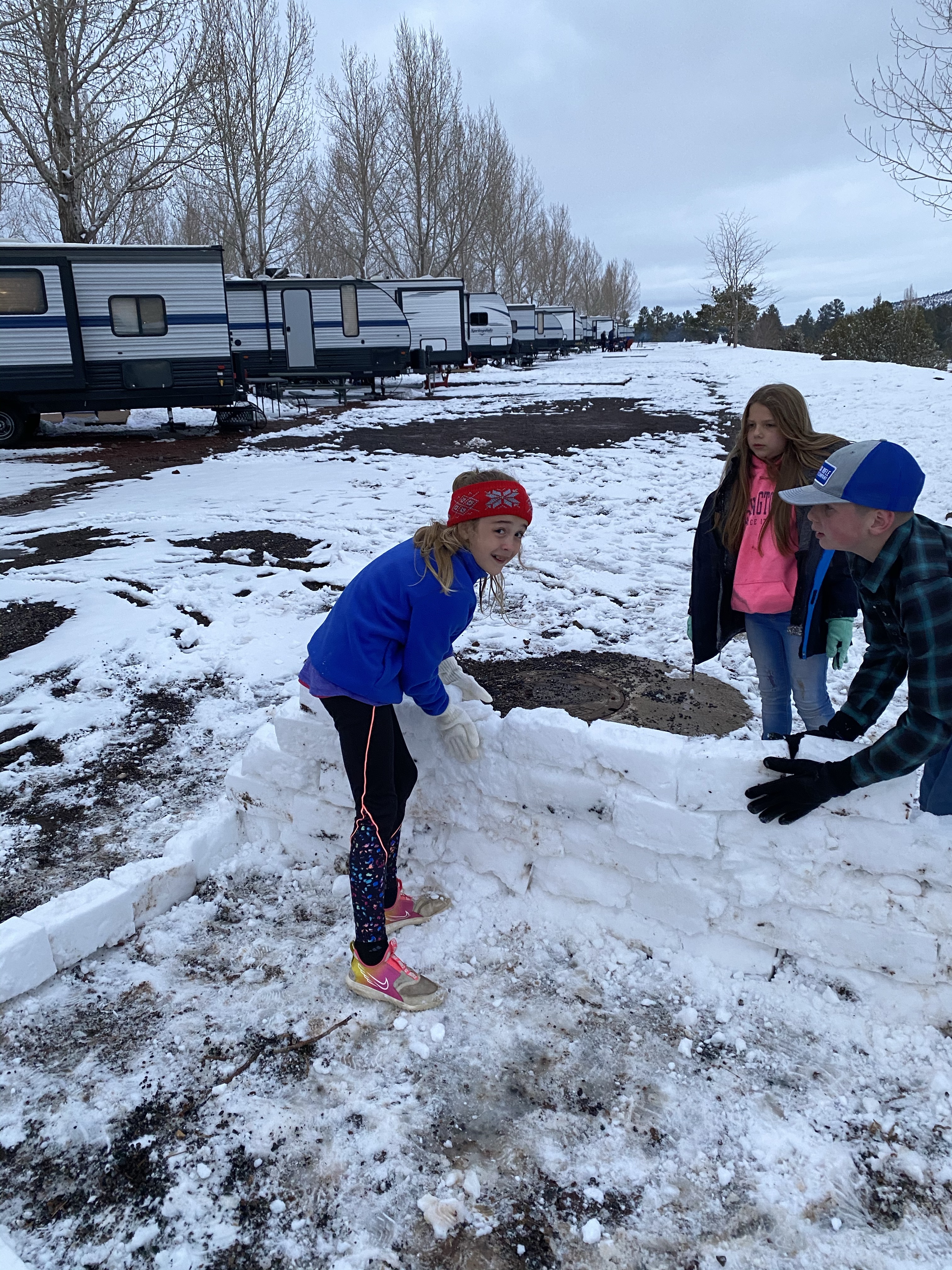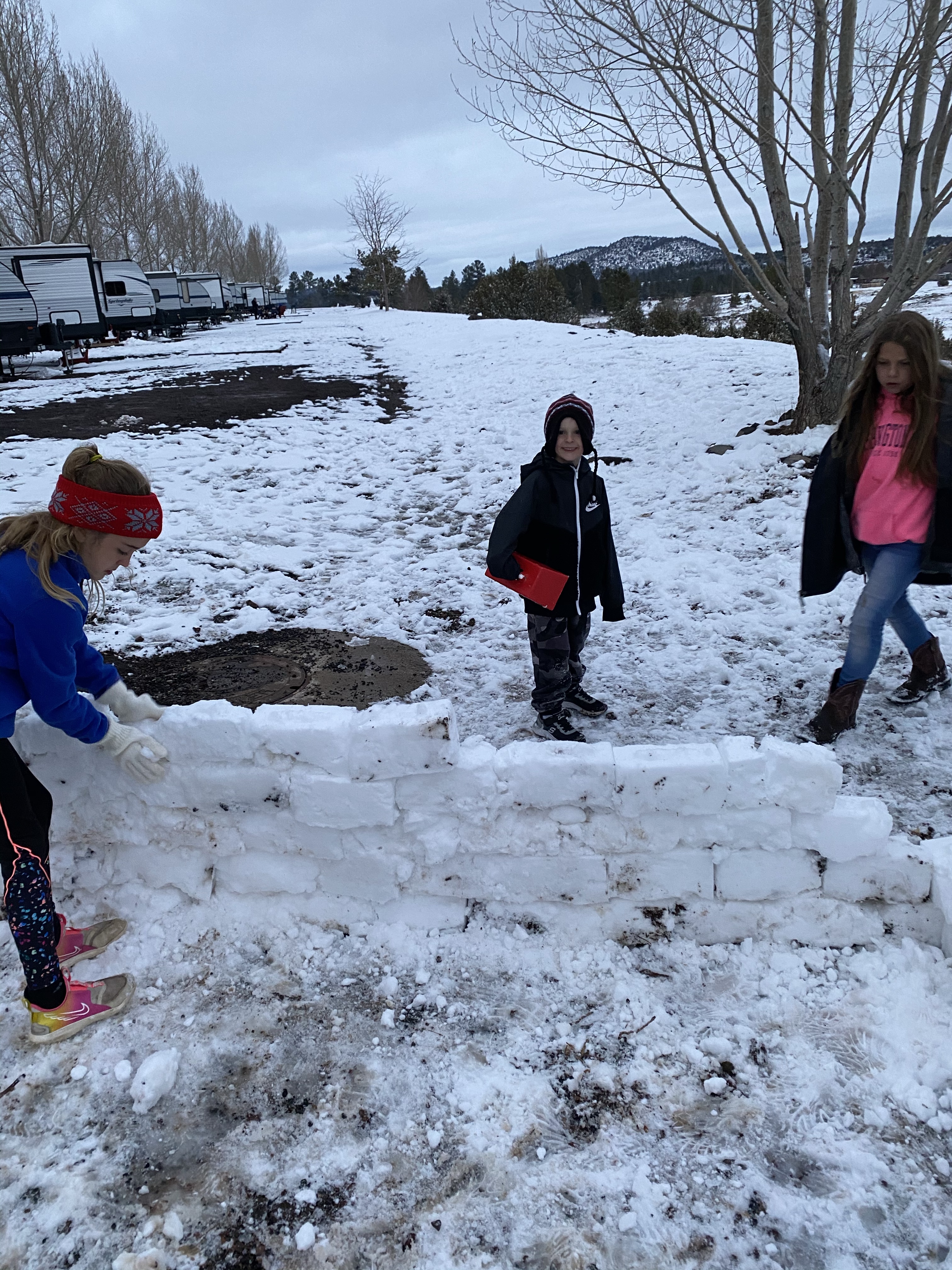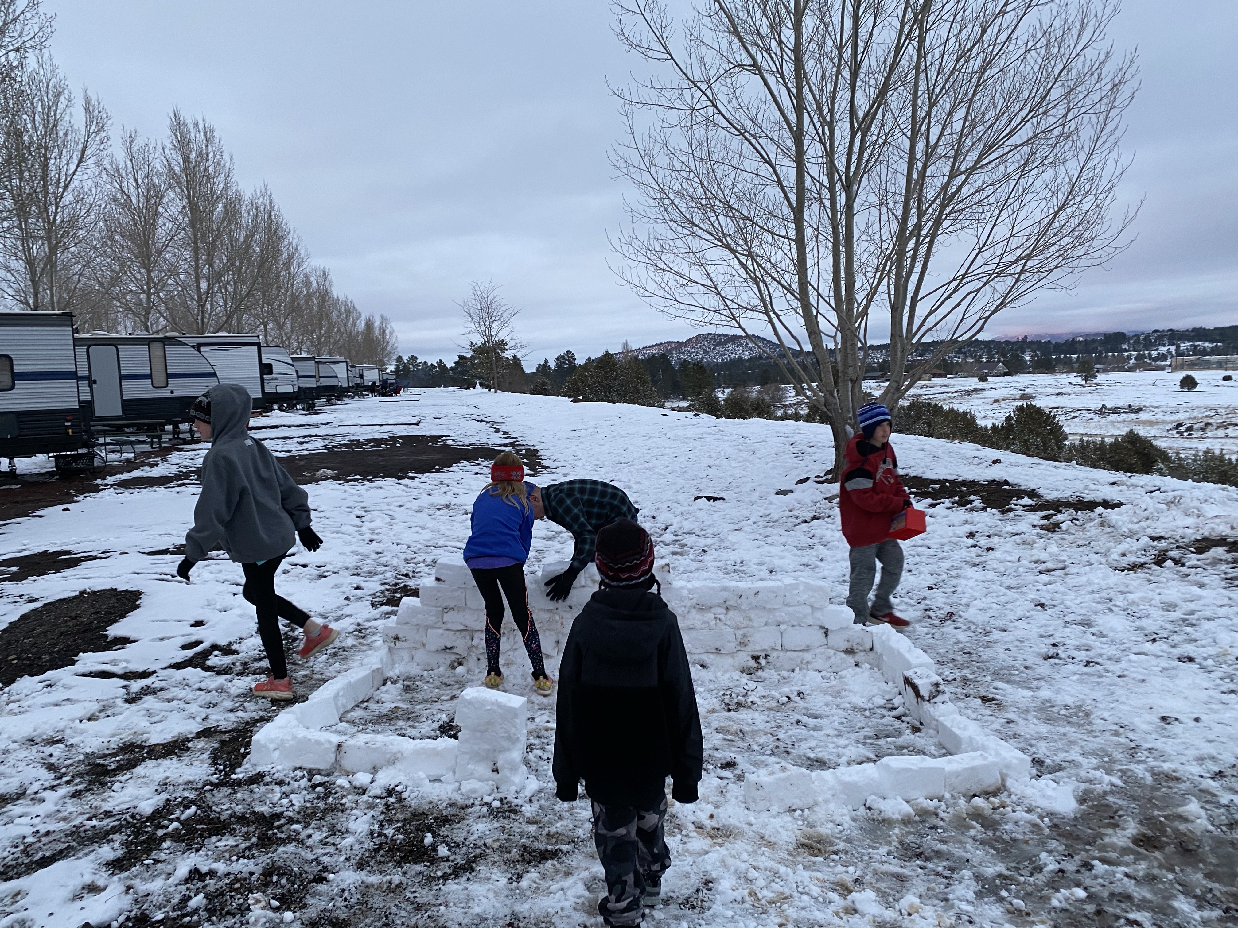 When we got to our glamping camper there were some kids outside playing in the snow so we joined them for a little while too!