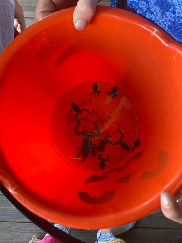 Let’s not forget about the worm hunt we went on, the hike where we saw snakes and found a “scorpion” later to discover it was actually a crawdad and the kids now call a “crabdaddy” (I will not correct this because I love it too much) they named Almond. Or the 9 frogs we caught (just little guys), they did name the big one Pistachio.